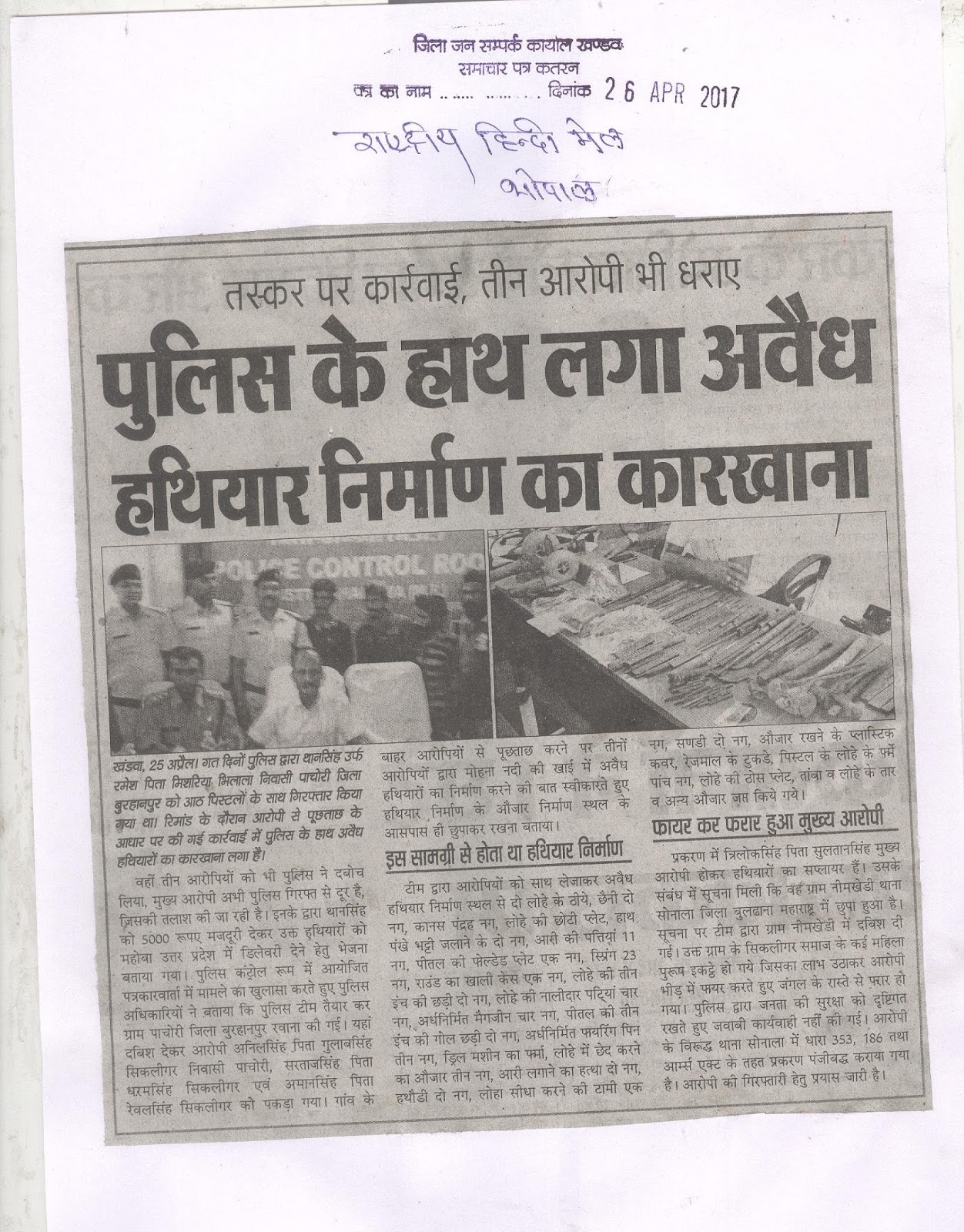 दिनांक 26 अप्रैल 2017 को समाचार पत्रों में प्रकाशित समाचार पत्र करतनें......