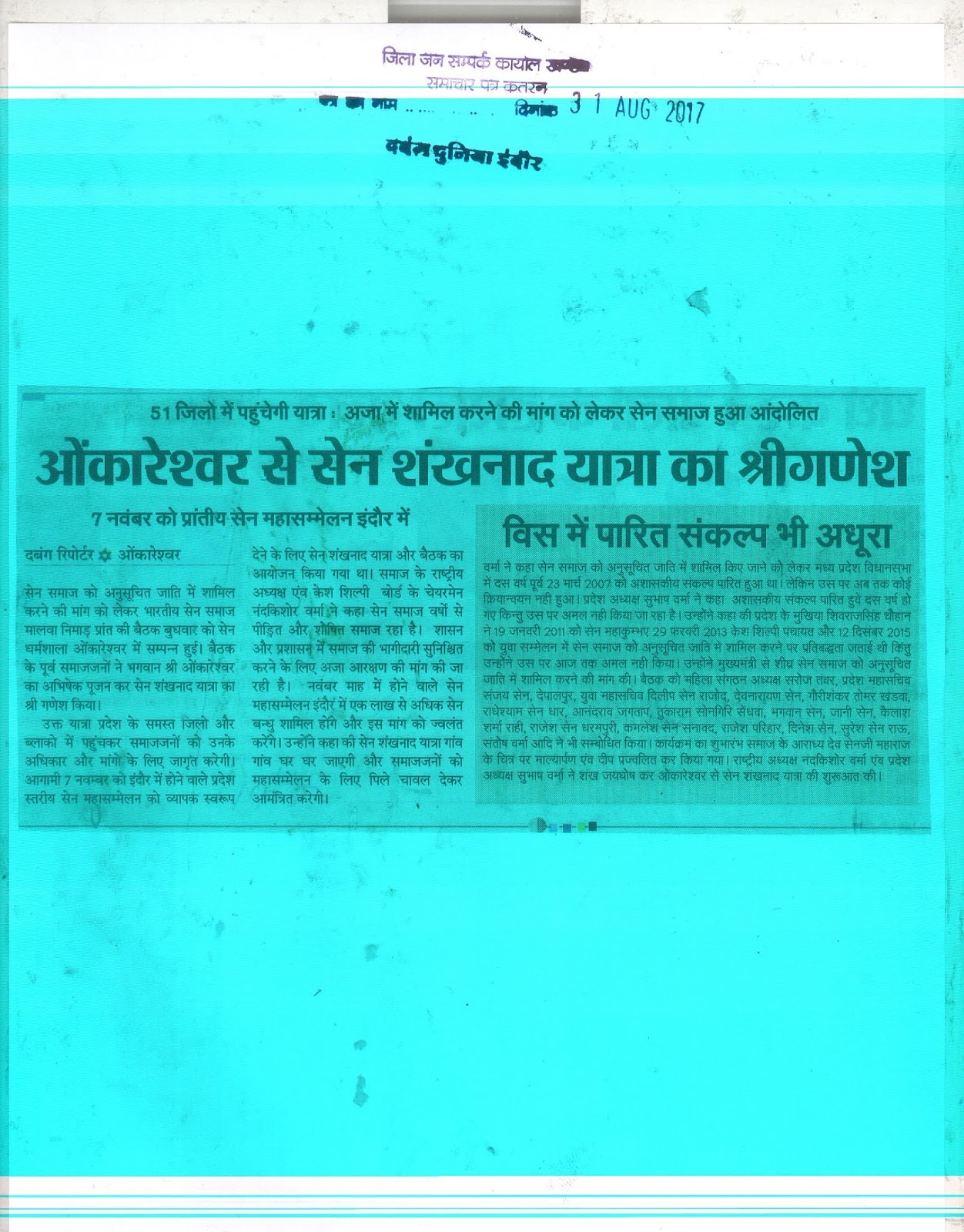 दिनांक 31 अगस्त 2017 को समाचार पत्रों में प्रकाशित समाचार पत्र करतनें......