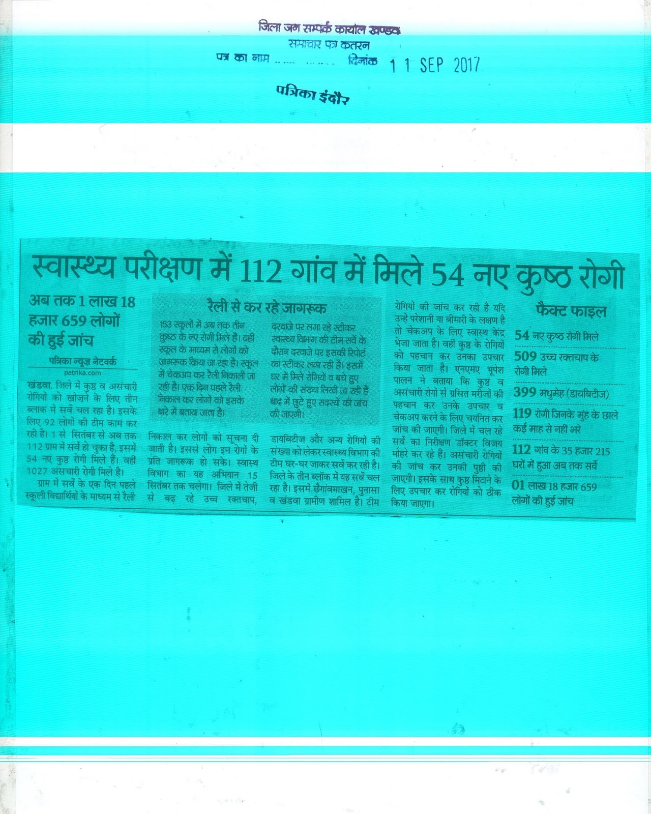 दिनांक 11 सितम्बर 2017 को समाचार पत्रों में प्रकाशित समाचार पत्र करतनें......