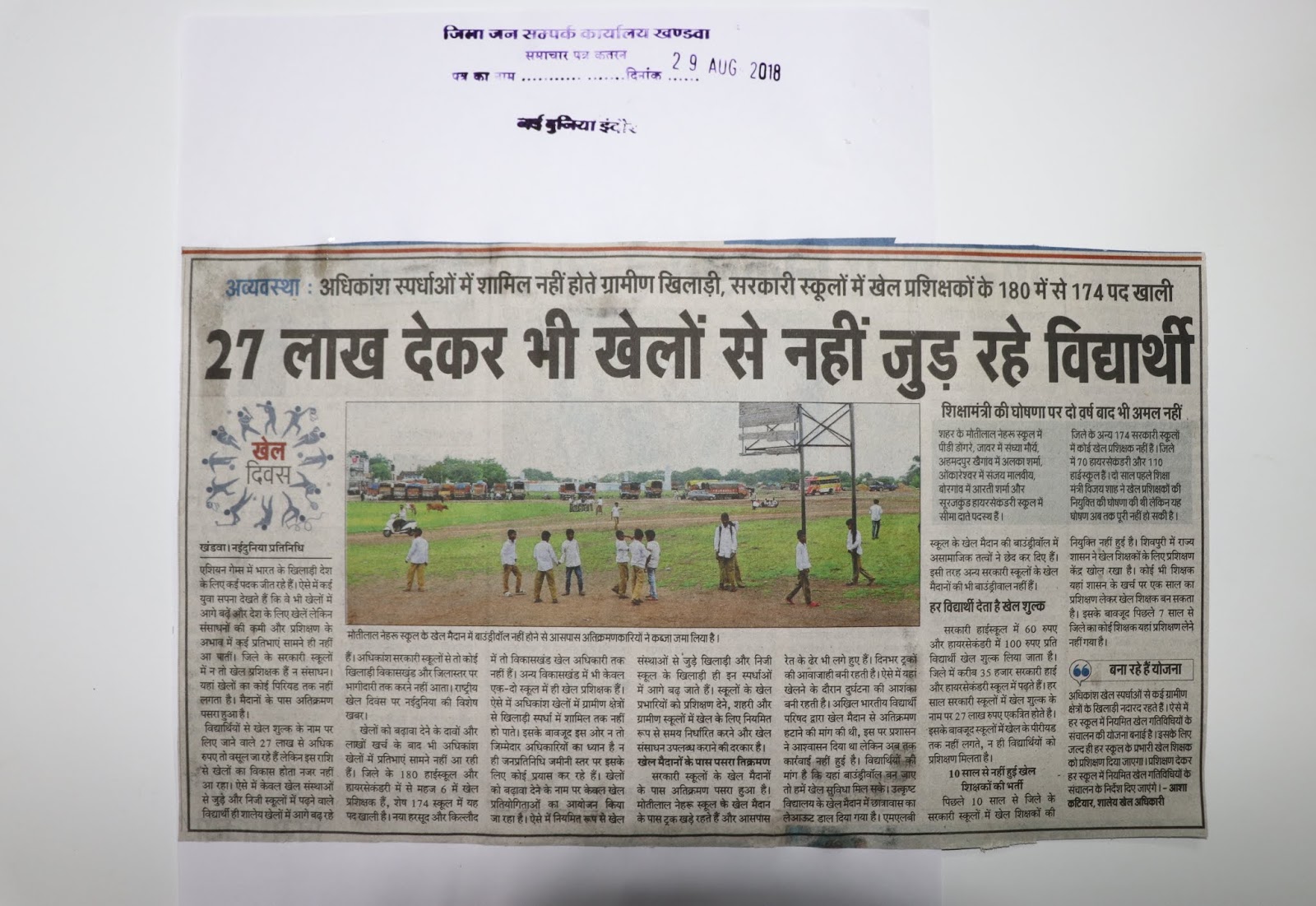 दिनांक 29 अगस्त 2018 को समाचार पत्रों में प्रकाशित समाचार पत्र कतरनें......