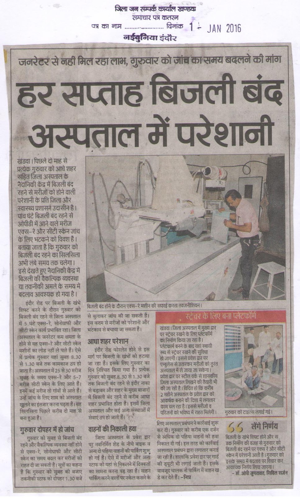 दिनांक 01 जनवरी 2016 को समाचार पत्रों में प्रकाशित समाचार पत्र करतनें......